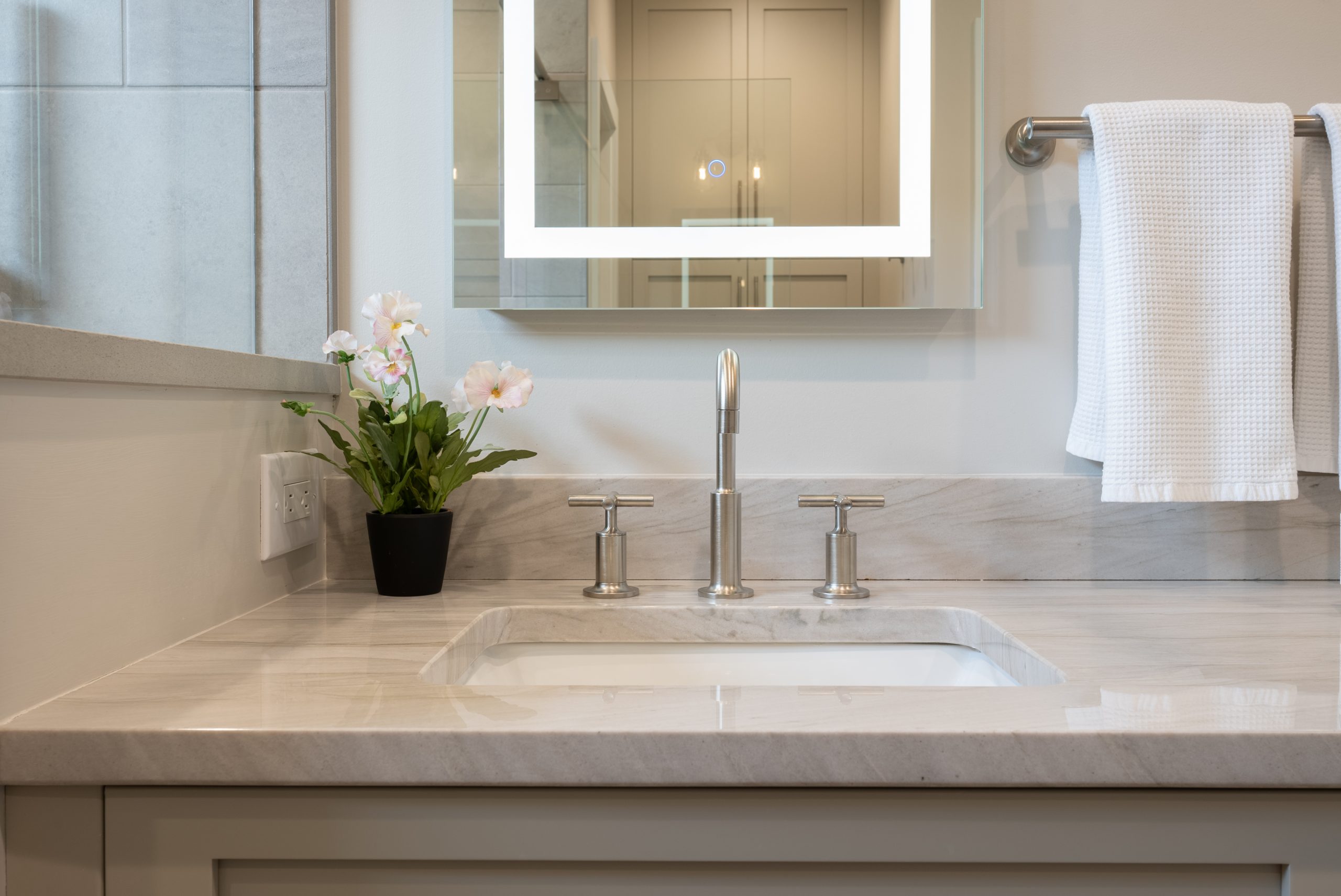 This Saratoga Springs master bathroom now feels like a personal spa—relaxing, functional, and timeless. The double shower, thoughtful lighting, and cohesive finishes offer a perfect blend of luxury and comfort. The homeowners now enjoy a peaceful daily retreat that’s both beautiful and built to last.