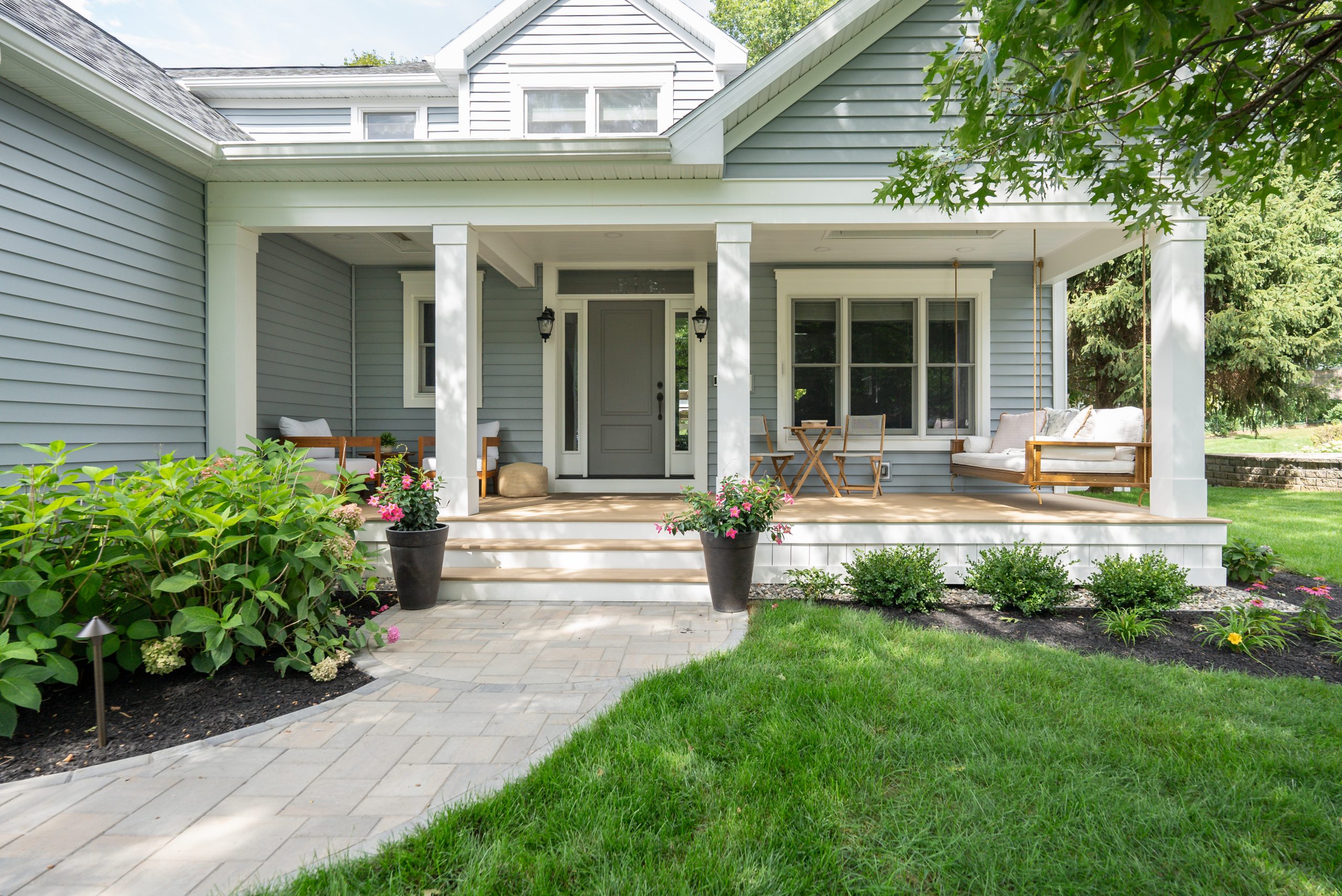 The result is an inviting, thoughtfully designed entry that enhances curb appeal, improves daily convenience, and allows the family to enjoy their outdoor living space comfortably throughout the year.