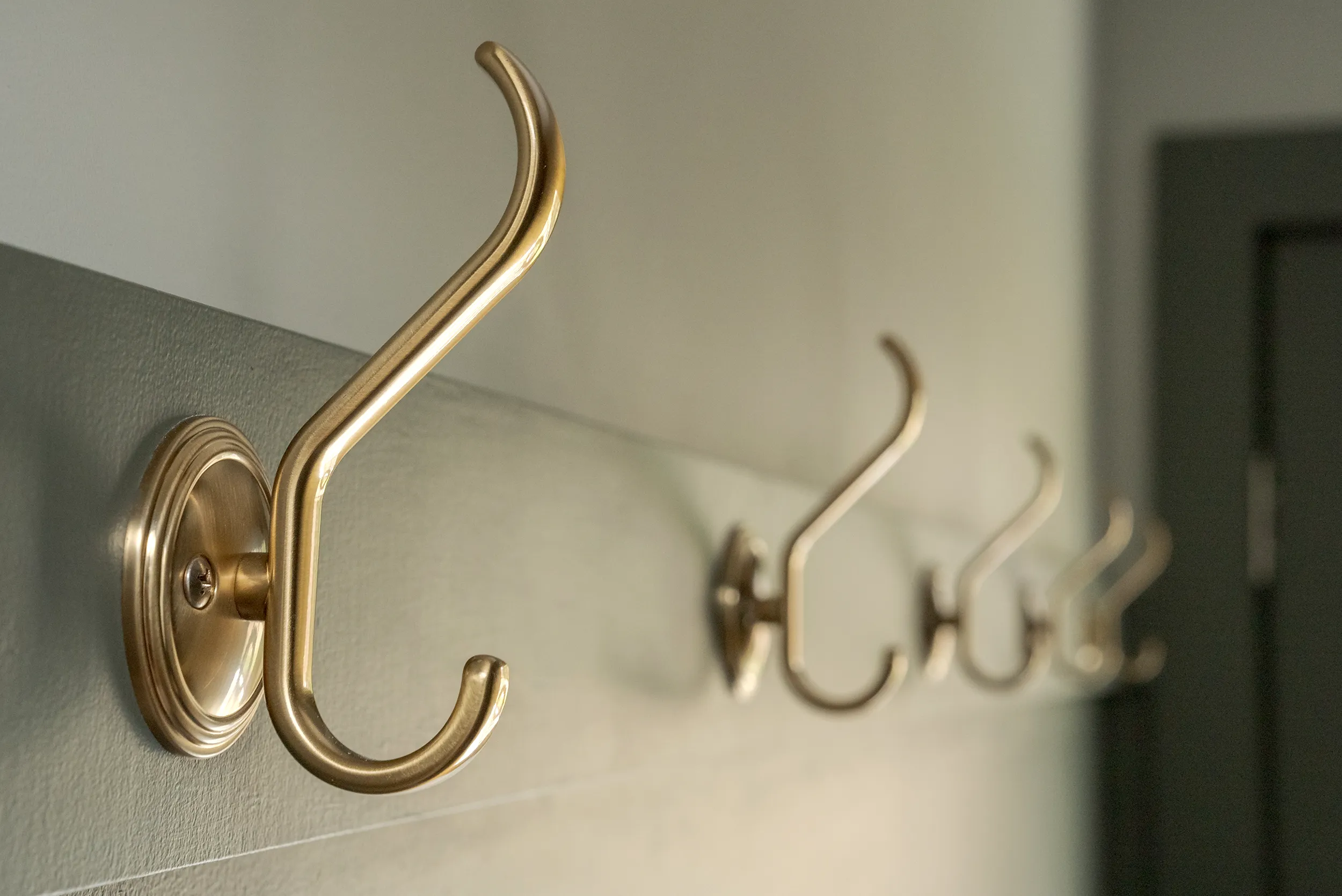We used many natural materials such as a white marble backsplash accenting the honed black soapstone at the perimeter cabinets. To offset the expansive perimeter cabinetry, we fabricated the large island from quarter sawn oak in a light stain and topped it with a light quartzite top. To add interest, a custom curved exhaust hood and honey bronze knobs and pulls were incorporated, as well as antique brass wire mesh inlaid on some of the doors. We used a number of the same series of fixtures and hardware in the mudroom and laundry, but mixed it up with black finishes and MSI quartz tops. For durability and ease of maintenance, wide plank luxury vinyl floor was installed in the laundry, half bath, and multi-purpose room.